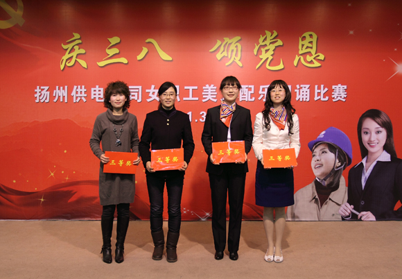 揚(yáng)州供電公司女職工委員會(huì)3月4日下午舉辦“慶三八、頌黨恩——揚(yáng)州供電公司女職工美文配樂(lè)朗誦比賽”活動(dòng)。公司女職工選手以美文配樂(lè)朗誦的形式,向偉大的中國(guó)共產(chǎn)黨表達(dá)了由衷的熱愛(ài)。揚(yáng)州供電公司黨委書(shū)記馬愛(ài)杰、工會(huì)主席吳鴻出席活動(dòng),揚(yáng)州各縣公司工會(huì)主席、各基層分工會(huì)主席、女工委員、女職工代表90多人參加了這次活動(dòng)。