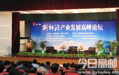 2011年4月14日上午,第七屆中國雙黃鴨蛋節(jié)暨撤縣設市20周年慶典活動重頭戲之一——新能源產(chǎn)業(yè)發(fā)展高峰論壇在高郵會議中心召開。丁一、夏正祥等高郵市領導出席活動。中國可再生能源學會光伏專業(yè)委員會主任、太陽能電池領域著名專家趙玉文,聯(lián)合國太陽能中心主任、著名太陽能情報專家喜文華,與高郵市部分黨政干部及數(shù)十家市內(nèi)外新能源企業(yè)共赴高峰論壇,共享陽光盛宴,共謀產(chǎn)業(yè)新發(fā)展。