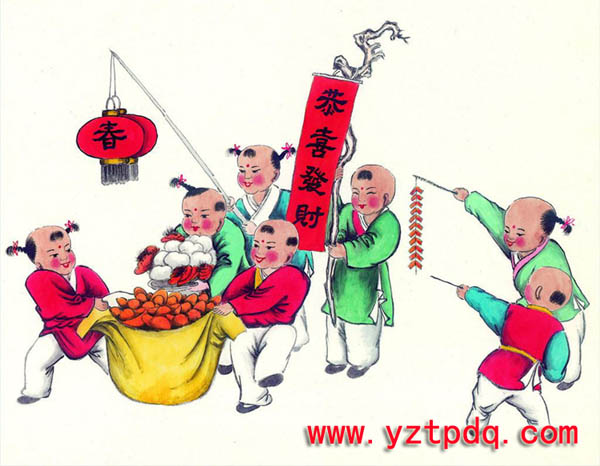 送灶以后,就真正開始了年貨的采購與囤積,貼春聯(lián)、貼門神、貼福字、貼年畫,這些寓意吉祥的大紅色的紙張給新年帶來了無處不在的喜氣與熱情,往往舊式有前后門的房屋會在前門貼春聯(lián),后門貼門神畫——唐朝初年的兩位大將秦叔寶和尉遲公。據(jù)說大門上貼上這兩位門神,許多妖魔鬼怪都會避而遠(yuǎn)之,而小孩子們則是對這兩位形象頗有點猙獰的門神既怕又敬、既畏又尊,很是有趣。家里屋內(nèi)的墻壁或房門上貼得都是些喜氣洋洋的年畫,比如麒麟送子、和氣娃娃等,現(xiàn)在的家庭大多以一卷卷漂亮精美的掛歷取代了各種花花綠綠的年畫,而“福”字卻貼得多了起來,那是因為越來越多的商家們愿意在新年貨品中夾上一兩張“福”字作為贈品,“福”字得倒著貼在門或窗戶上,這樣過路的人們看見了,會指著說“福”倒了,那么福就真的要到了哦。