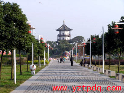 廣場(chǎng)設(shè)計(jì)遵循“以人為本、以水為源、以綠為美”的原則,注重高郵水鄉(xiāng)的地域特色。在整體布局上采用“一軸二面三點(diǎn)”,即以“景觀主軸線,蝶池小面、蝶園主廣場(chǎng),入口商業(yè)休閑廣場(chǎng)、親水廣場(chǎng)、宋城墻魁星閣古跡”為主體,水上平臺(tái)和引橋流水融為一體,使人感受到水鄉(xiāng)特有的水性的滋潤(rùn)。廣場(chǎng)綠化設(shè)計(jì)充分體現(xiàn)“花香蝶自來(lái)”的意境,種植花草樹(shù)木近40個(gè)品種,其中有櫸樹(shù)、香樟、桂花、梅花、天堂草等,錯(cuò)落有致。駐足看,廣場(chǎng)綠草如茵,彩蝶飛舞,彩色噴泉千姿百態(tài);徐行聽(tīng),流水淙淙,舞曲翩翩,綠樹(shù)叢中鳥(niǎo)啼鶯囀,讓人心曠神怡。
