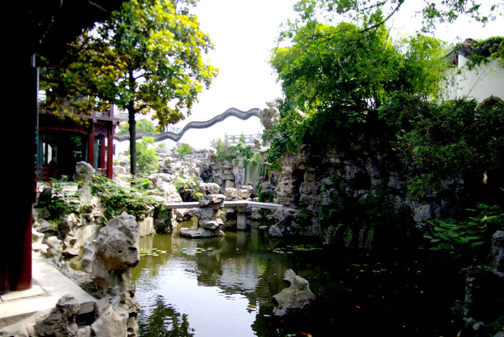 小盤谷在揚州園林中有獨到之處,與個園、何園相比,小盤谷占地很小,建筑物和山石也不多,但妙在集中緊湊,以少勝多,即小見大。水池、山石和樓閣之間,或幽深,或開朗,或高峻,或低平,對比鮮明,節(jié)奏多變,在有限的空間里,因地制宜,隨形造景,產(chǎn)生深山大澤的氣勢,咫尺天涯,耐人尋味,這是其他園子所不能相比的。