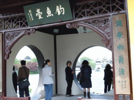 在中國(guó),以“釣魚(yú)臺(tái)”命名的景點(diǎn)非常多,但揚(yáng)州的釣魚(yú)卻是眾多釣臺(tái)中體量最小,也是極富特色的一座。它是中國(guó)名亭建筑的典范,是中國(guó)園林“框景”藝術(shù)的代表作品。站在釣魚(yú)臺(tái)斜角 60 度,您可以在北邊的圓洞中看到五亭橋橫臥波光:而南邊的橢圓形洞中則正好可以看到巍巍白塔。這一景象一彩一素,一橫一臥,真是堪稱絕妙。這里也是外地游客到揚(yáng)州一定要留影的地方。那洞中借景的畫(huà)面正好對(duì)應(yīng)了“三星拱照”的名稱。