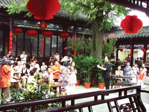 下午4時,瓊花觀社區(qū)三祝庵鄰里中心內(nèi)古琴聲聲,談笑陣陣。揚州普通家庭歡度中秋的幸福時光被一一記錄。