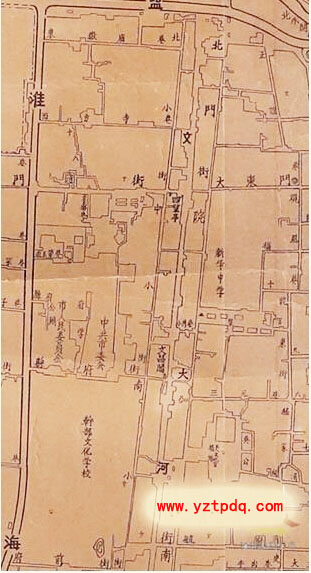 小編查找志書中地圖發(fā)現(xiàn),位于府衙、縣衙的東面,從舊城北門水關至南水關的這段市河,沿河附近設有縣學(現(xiàn)揚大附小址)、文魁樓(今四望亭)、文廟(今政協(xié)),河上架有文津橋,橋上有文昌閣,上曾懸有“邗上文樞”匾額……揚州的各類文化殿堂都緊臨這段市河。相傳在古代這段市河被視為文脈,因此這段市河在民間被稱為“文河”。