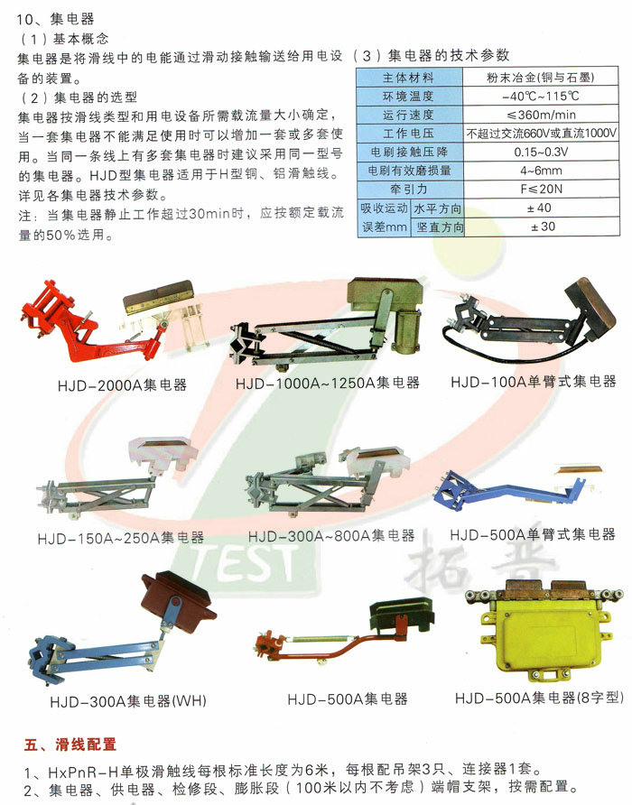 注:1、滑觸線標(biāo)準(zhǔn)長度:6m。